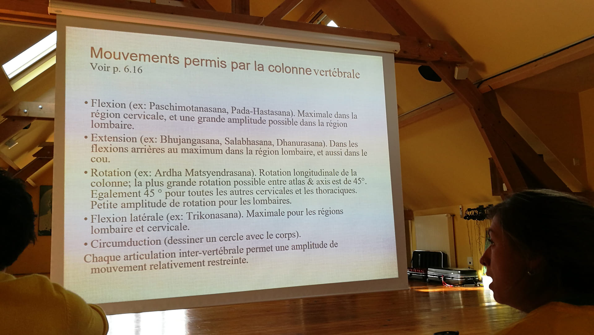 photo prise durant l'un des cours d'anatomie d'un tableau expliquant les mouvements permis par la colonne vertébrale